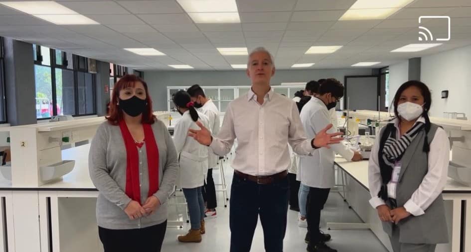 El gobernador del Estado de México, Alfredo del Mazo Maza, estuvo en el Tecnológico de Estudios Superiores de #CuautitlánIzcalli (TESCI), donde recorrió el recién rehabilitado laboratorio de Química, un taller de armadora y conoció el sistema de captación de agua pluvial con que cuenta la institución.