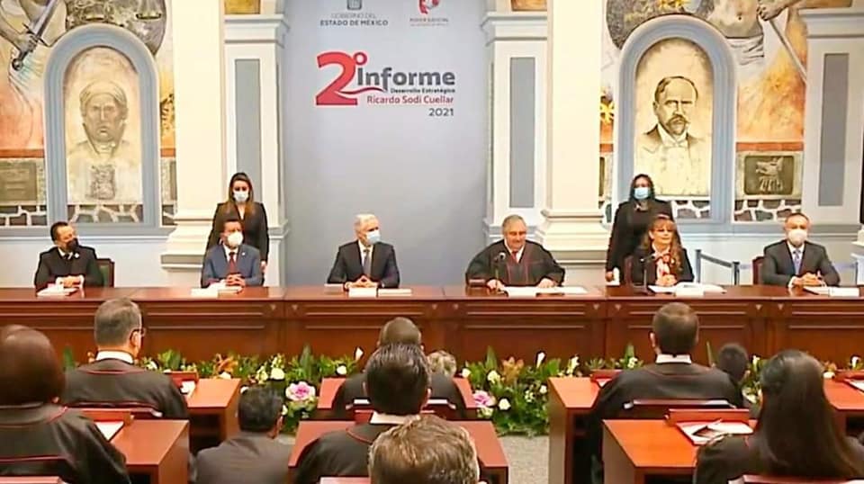 En acto encabezado por el Gobernador Mexiquense, Alfredo del Mazo Maza, el Secretario General del Sindicato Único de Trabajadores de los Poderes, Municipios e Instituciones Descentralizadas del Estado de México (SUTEyM), Herminio Cahue Calderón, asistió al Segundo Informe de Desarrollo Estratégico del Magistrado Ricardo Sodi Cuellar, Presidente del Tribunal Superior de Justicia de la entidad.