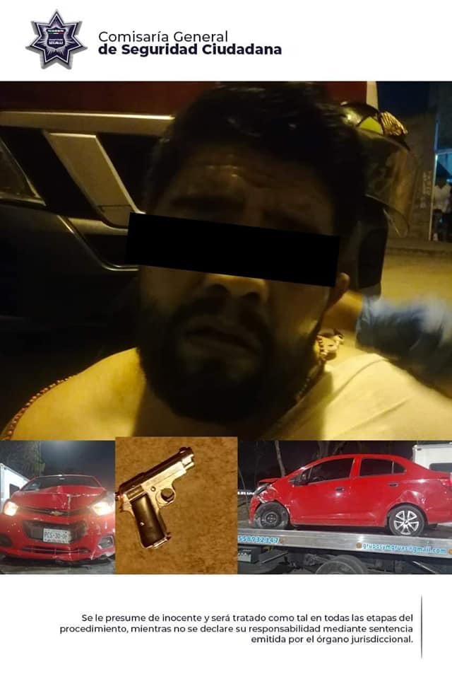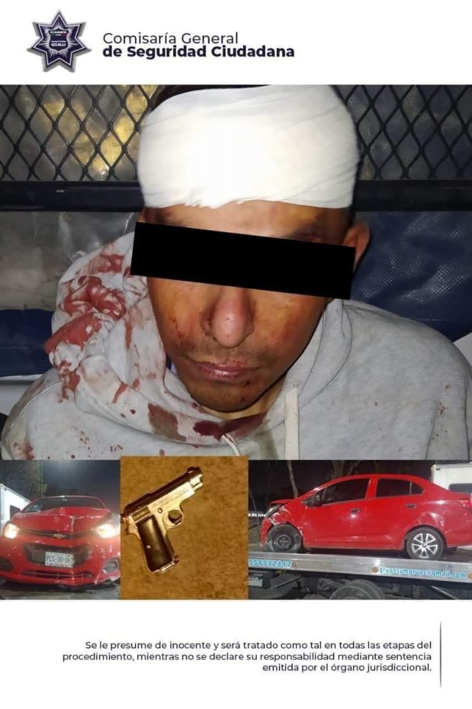 Después de unos minutos, los perseguidos impactaron el coche donde viajaban en una casa ubicada en la colonia Santa María Guadalupe las Torres; al verse acorralados uno de los delincuentes disparó contra los elementos, acción que fue repelida por un miembro de la policía estatal, logrando la detención de los tres sujetos identificados como Osvaldo “N”, Luis “N” y Eliu “N”, el último fue herido por impacto de bala y trasladado en calidad de detenido a un hospital de Cuautitlán México.