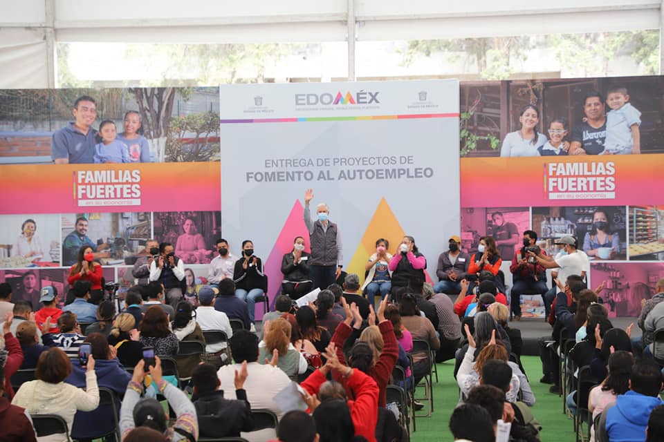 Alfredo Del Mazo reconoció que con este programa se trabaja de la mano con las familias de Cuautitlán y la región, después de dos años de pandemia, al estimular el autoempleo y gracias a la entrega de recursos se podrán mejorar sus pequeños negocios, porque hoy el 60 por ciento de los empleos del país se generan en este tipo de actividades, señaló.