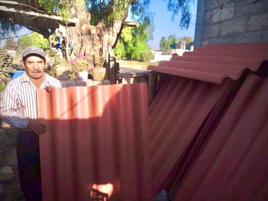El señor Sebastián Rodríguez, vecino del pueblo de San Sebastián Xhala, recibió apoyo del diputado local por el Distrito 43, #FranciscoRojasCano, en el sentido de cambiar las láminas del techo de su casa, porque las que tenía estaban en muy mal estado.